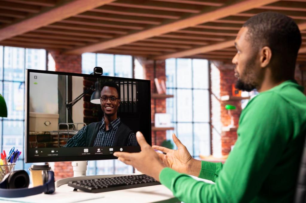 Kurze Video-Check-ins mit Agenda, Timebox und Protokoll liefern Fokus. Kamera optional, Notizen verpflichtend. Starte mit einer ruhigen Runde, beende mit klaren Next Steps. So werden Meetings wertvoller, seltener und deutlich weniger ermüdend.